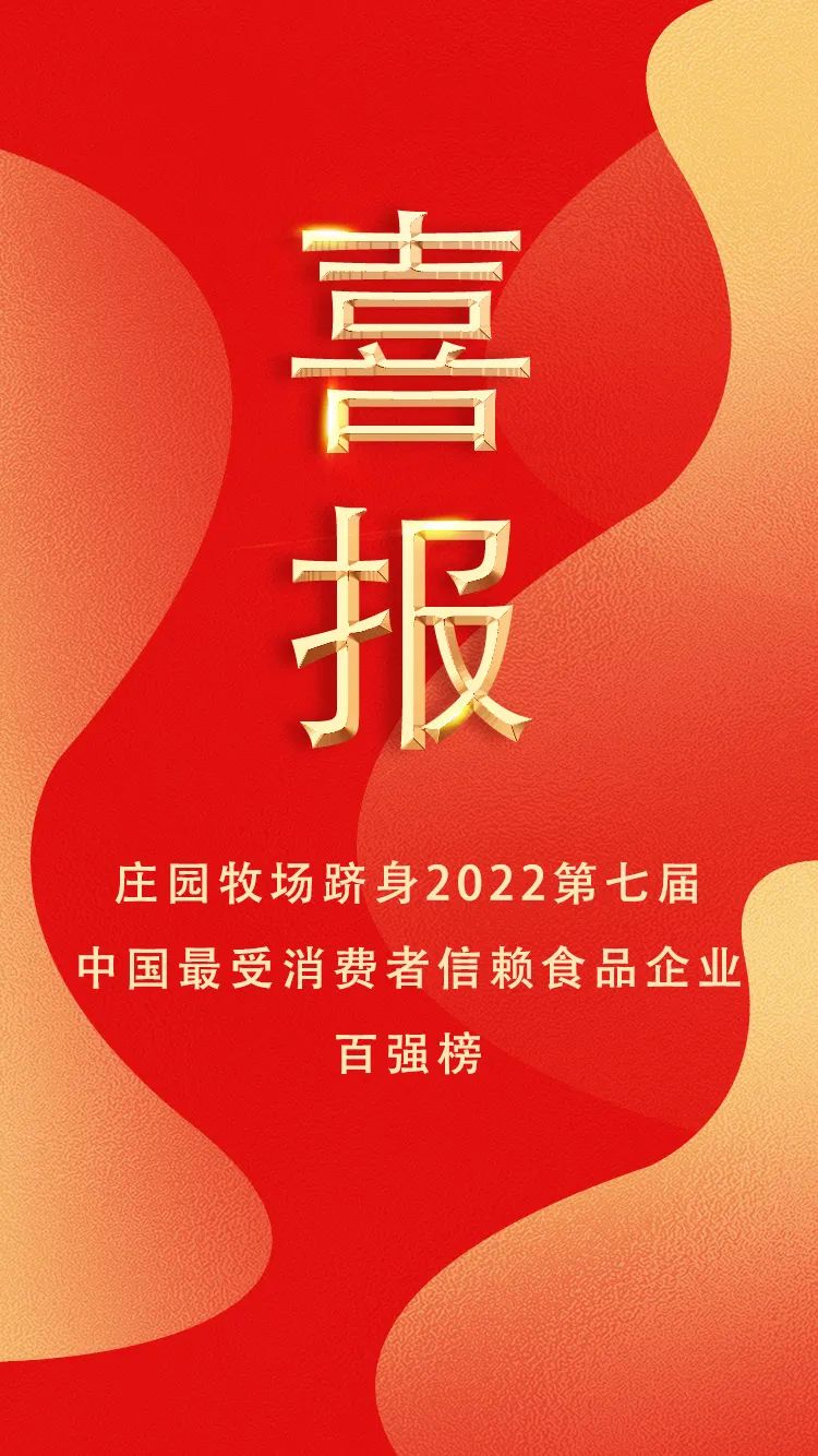 榜单通过消费者网络问卷调研、企业问卷调研等方法,获得千余家候选中国食品企业,再由中国数据研究中心专家及食品领域专家通过计分加权,汇总得出百强榜单。庄园牧场跻身榜单百强,作为榜单“新秀”,这份排名不仅是对“庄园牧场”品牌的认可,也代表着对庄园食品安全的认可。