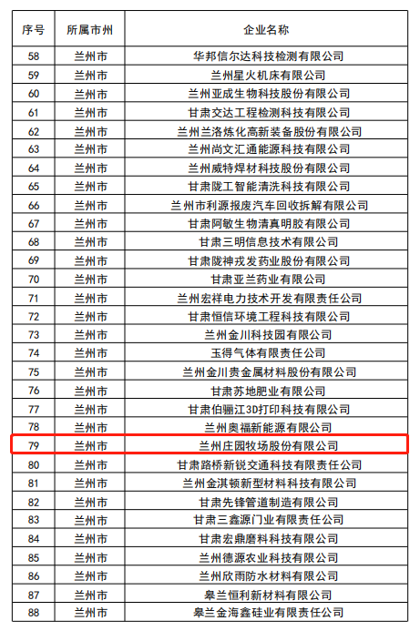 近日,甘肃省工业和信息化厅发布2023年度第一批创新型中小企业名单,庄园牧场成功入选该名单。