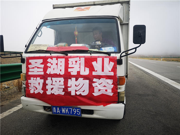 5月24日,青海青海湖乳业有限责任公司向玛多县运输的第一批物资抵达震中,让灾区人民及救灾英雄感受到来自本土企业的关怀和慰问。