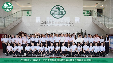 8月16日,农行甘肃分行组织省、市行青年员工到庄园牧场榆中生产基地开展“学习宣传弘扬饶才富精神 金融服务乡村全面振兴企业行”主题党日暨青年讲坛活动。中国农业银行甘肃省分行党委委员、副行长王纪旺出席活动,庄园牧场党委委员、副总经理、财务总监魏红兵参加活动。