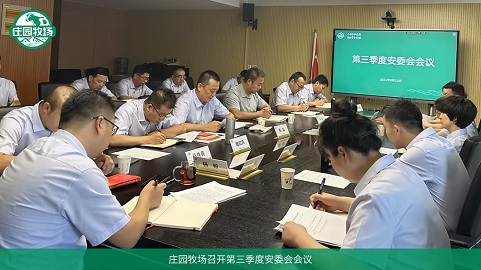 8月23日,庄园牧场召开第三季度安委会会议。会议传达学习习近平总书记对防汛抗旱工作作出的重要指示精神及全省关于做好安全生产、防汛减灾及信访维稳等工作的会议精神,安全生产标准化基本规范,通报公司二季度工作情况和问题,安排部署下阶段重点工作。公司党委书记、董事长、安委会主任杨毅出席会议并讲话,公司总经理马铁民主持会议。
