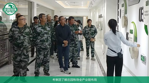陈志刚一行参观了集前处理、灌装和包装等工序于一体的乳制品数字化生产车间、企业发展长廊、产品展示大厅,并观看了企业宣传片。通过实地考察、现场交流等方式详细了解了乳制品从牧场养殖到乳品加工直达终端产品营销的全链条产业链模式。