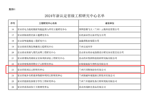 近日,由庄园牧场建设的甘肃省乳制品工程研究中心被甘肃省发展和改革委员会认定为省级工程研究中心。